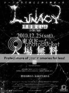 O concerto gratuito foi intitulado: "LUNACY Kurofuku Gentei GIG~The Holy Night~", houve também o anúncio de que eles vão lançar um álbum "LUNA SEA" que irá auto-representar primeiro álbum, que foi lançado em Abril de 1991, em 16 Março 2011.