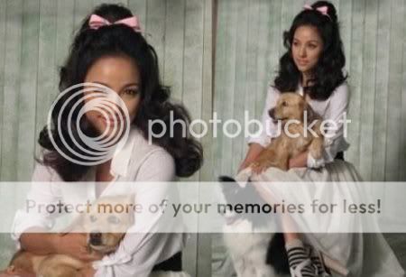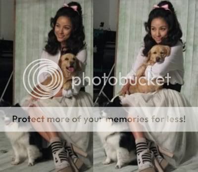 As fotos mostram Hyori com o cabelo encaracolado, volumoso, vestida com uma blusa branca e uma saia de cor creme. Se a roupa não fazer você se sentir sentimental, então certamente os dois filhotes fofo que "posam" com ela ficarão encarregados de causar tal sentimento. Os coordenadores decidiram ainda colocar um laço rosa de bebê.